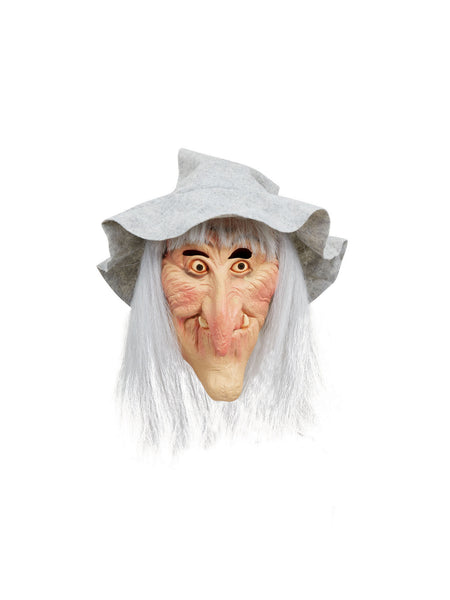 Dit masker is de perfecte accessoire voor jouw kostuum. Of je nu volledig verkleed gaat of gewoon wat wilt verkleden, dit heksenmasker met grijze hoed en haar is de perfecte oplossing.