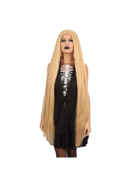 Verkleed je met deze Blonde pruik. Verpakt in het zwart, de perfecte aanvulling op je kostuum! Je zult onherkenbaar zijn en in het ideale kostuum voor een themafeest of verkleedevenement zijn.