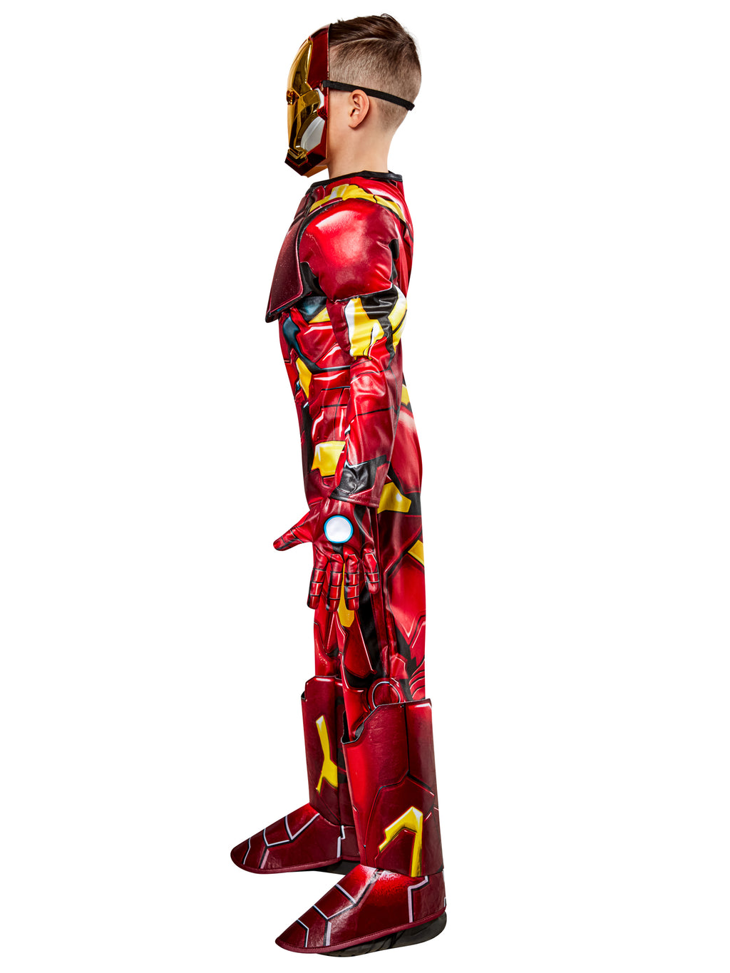 Trek dit pak aan en word de geniale, miljardair, playboy, filantroop met dit premium Iron Man-kostuum Het kostuum heeft een digitale print op een glanzende jersey jumpsuit met laarshoezen en een TPU metallic badge op de borst. Het geëlektroplateerde masker met blauwe acetaatogen maakt de look compleet en stelt je in staat om duidelijk te zien terwijl je de wereld redt. Gemaakt van hoogwaardige materialen, is dit Iron Man-kostuum comfortabel en gemakkelijk te dragen, zodat je je kunt concentreren op je superheldentaken. Perfect voor Halloween, themafeesten of elke andere gelegenheid waar je je favoriete Avenger wilt worden, dit kostuum laat je voelen alsof je de kracht hebt om de wereld te redden. Bestel nu en maak je klaar om Iron Man te worden met dit premium kostuum!