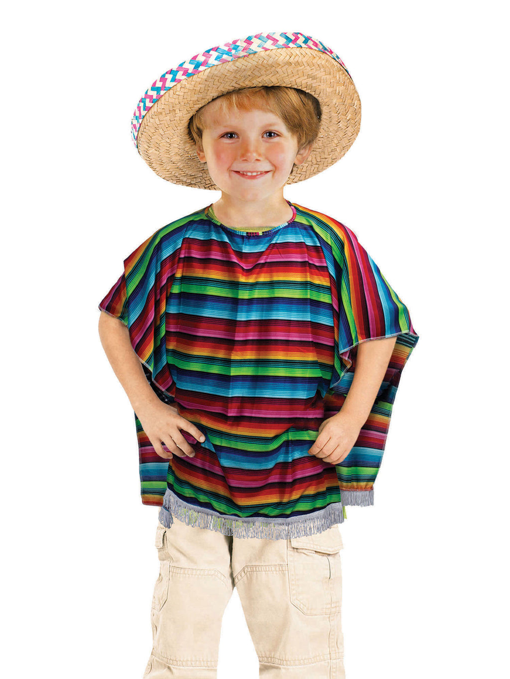 Kleed je kleintje aan in dit Mexicaanse Poncho kinderkostuum Of het nu voor Carnaval is, een verkleedfeestje of om een vaste favoriet van je verkleedkist te worden, dit kinderkostuum zal het beste cadeau zijn voor je kleintje.