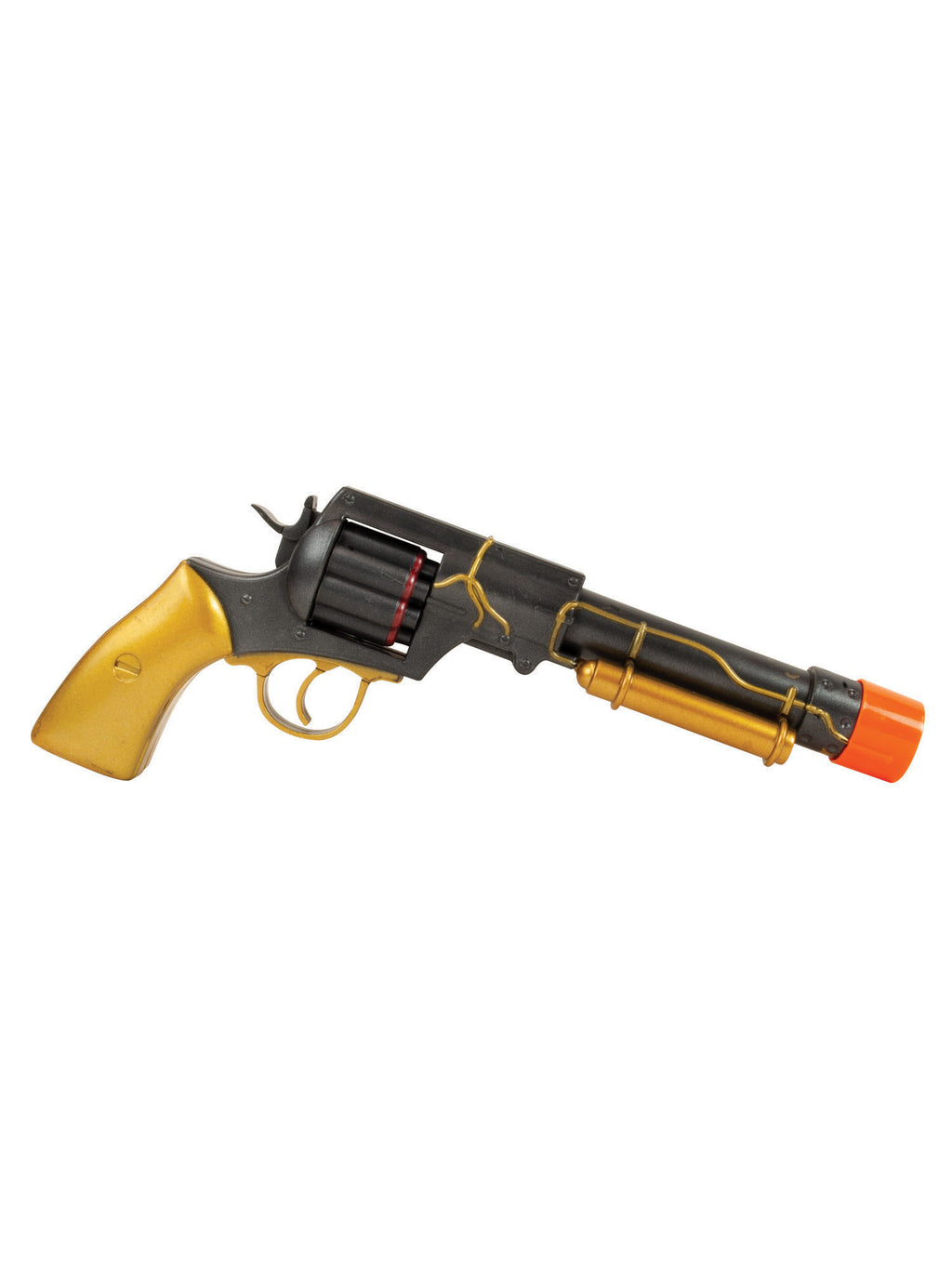 Voeg de finishing touch toe aan je kostuum met deze Steampunk Cowboy Pistool Dit accessoire is een must-have om je kostuum compleet te maken voor verschillende evenementen, van themafeesten tot verkleedpartijen!